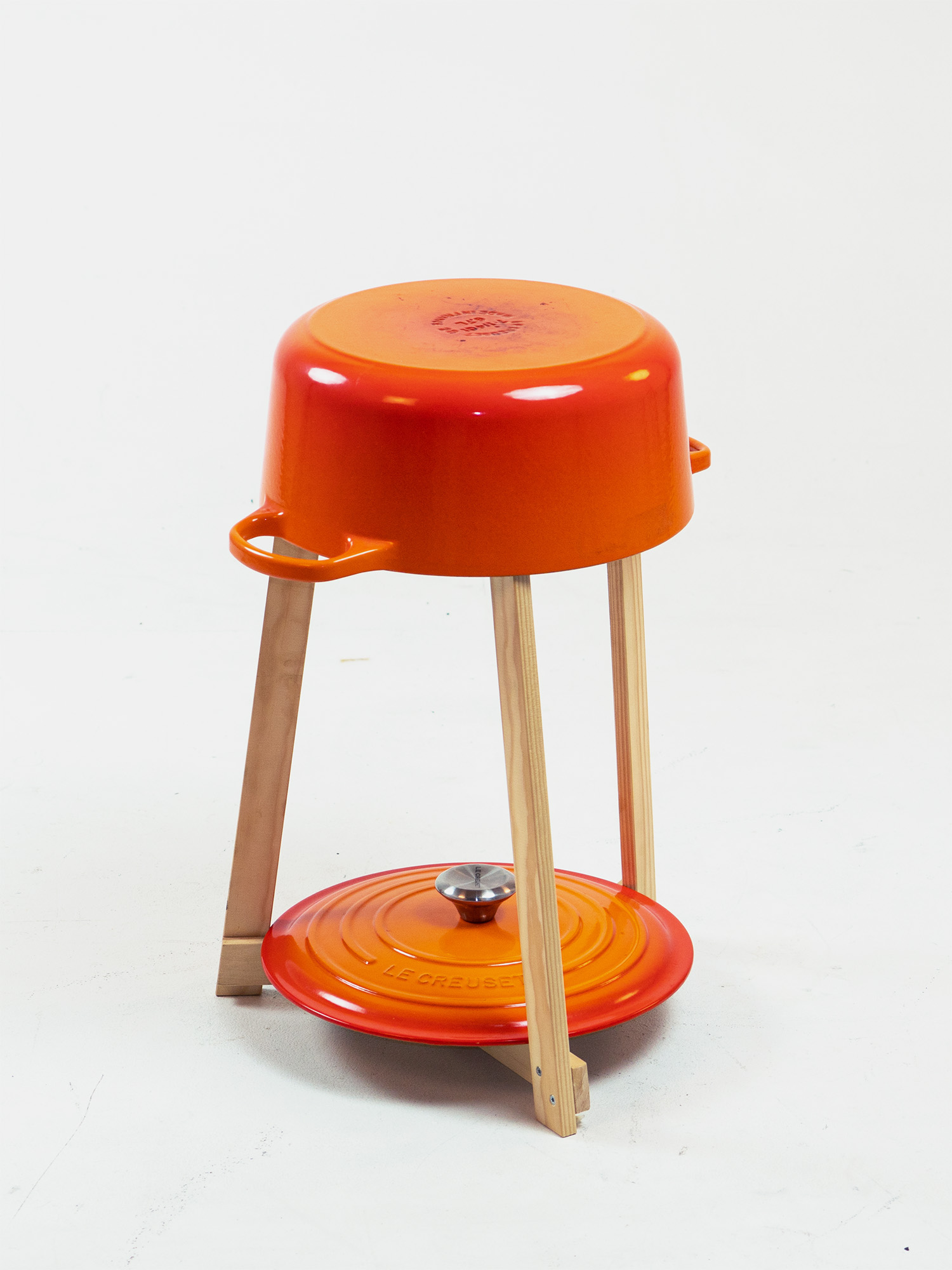 - A quick workshop within a sustainability course, focused on simple techniques and constrained material. When prototyping rapidly, the idea of creating a kitchen stool in both an iconic and indexical sense developed. I rushed home to grab my dutch oven. With only 24 screws, no glue and a few meters of 12x35mm pine, the “Le Creusit” was created.